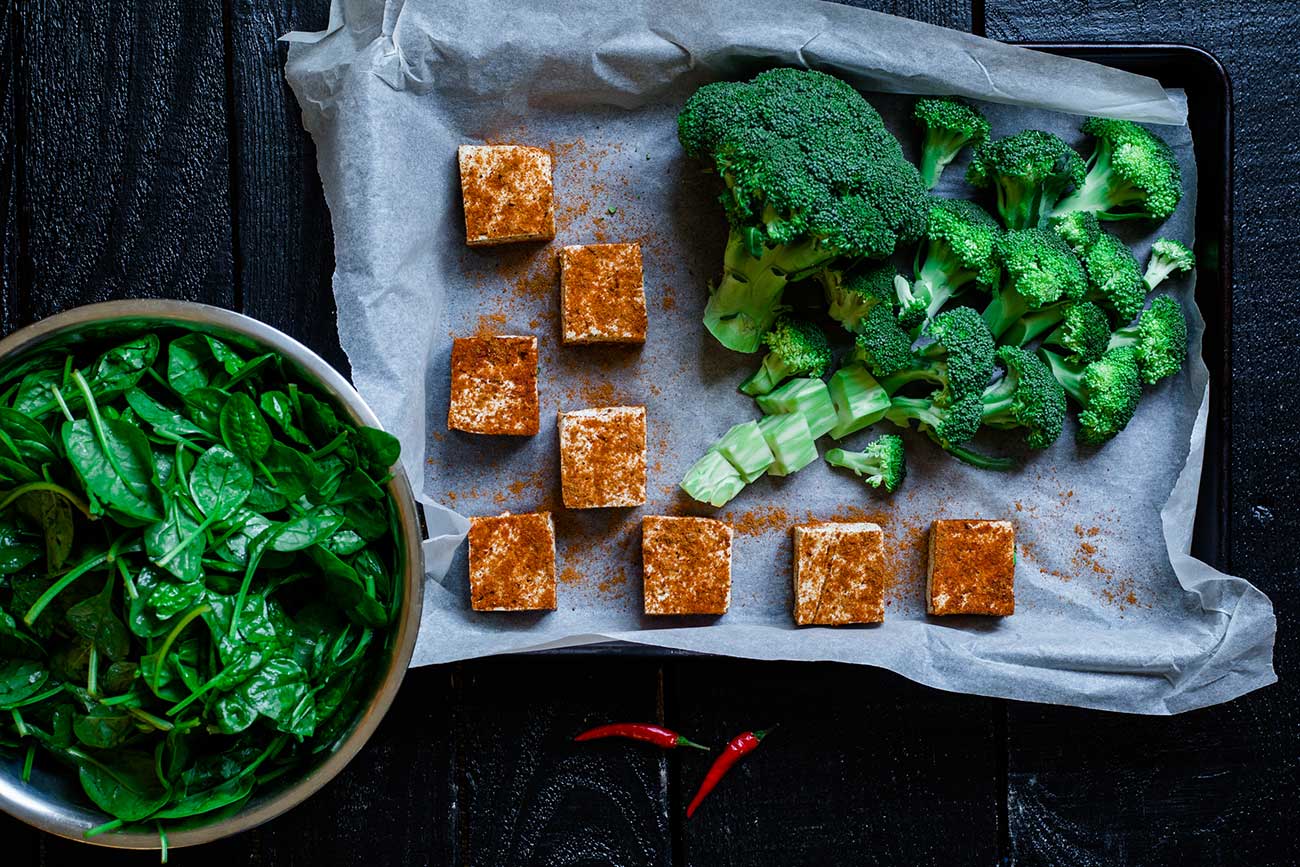 Bowl meals like this are delicious and simple and combine a couple of our favorite techniques: using a seasoned pan and building a baking sheet veg board. The secret to this recipe is seasoning and preparing each ingredient in the best way they should be cooked individually. You then arrange them aesthetically on one baking pan to finish in the oven before serving. This makes it easy to time meals perfectly, have fun doing it and produce something beautiful.