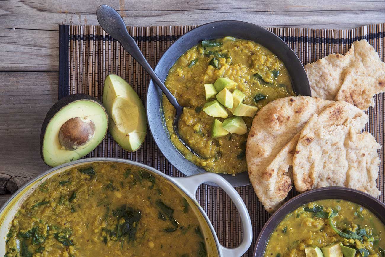 This delicious dahl soup is quick and easy to prep, and packed full of protein, leafy greens, and mega flavor.